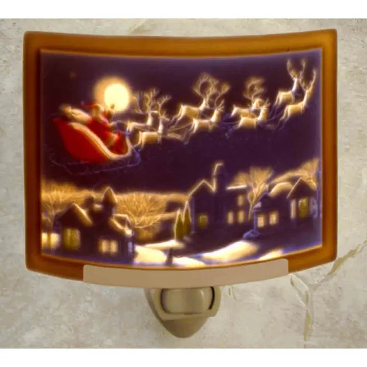 This is a porcelain lithophane night light. The light shining through different thicknesses of porcelain creates this highly detailed image; it is not a photo. It comes from an original engraving in wax, and we cast kiln fired porcelain into a mold made from the original carving. On this piece, a colored ceramic glaze is fired onto the back, with the color diffusing through when lit. 4.5" h x 4.5" w x 2.5"D. Comes gift boxed, complete with bulb and descriptive insert. It makes a timeless and elegant gift.