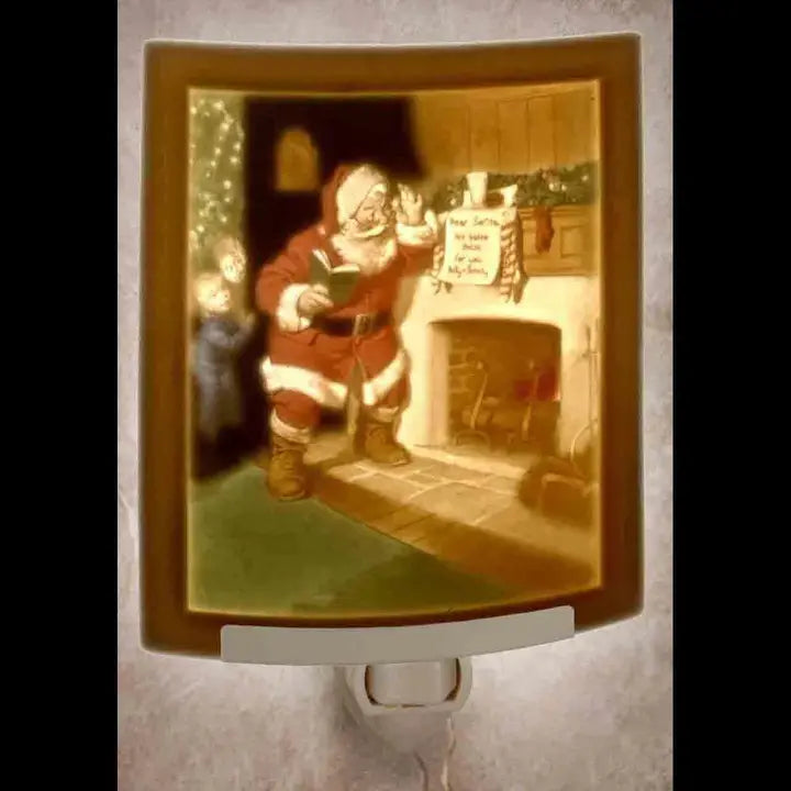 This is a porcelain lithophane night light. The light shining through different thicknesses of porcelain creates this highly detailed image; it is not a photo. It comes from an original engraving in wax, and we cast kiln fired porcelain into a mold made from the original carving. On this piece, a colored ceramic glaze is fired onto the back, diffusing through when lit. 5.5" H x 3.5" W x 2.5"D. Comes gift boxed, complete with bulb and descriptive insert. It makes a timeless and elegant gift.